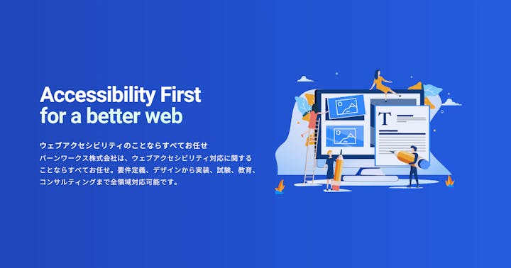 バーンワークス株式会社は、2013年の設立以来、(自社で言うのもおこがましいというのは多少ありつつですが)「『ウェブアクセシビリティに強い』ウェブサイト制作会社です」という謳い文句で営業活動を続けてきました。おかげさまで、多くのクライアント様よりご依頼、ご相談をいただき、様々な企業、団体様のウェブアクセシビリティ関連業務をお手伝いさせていただいております。